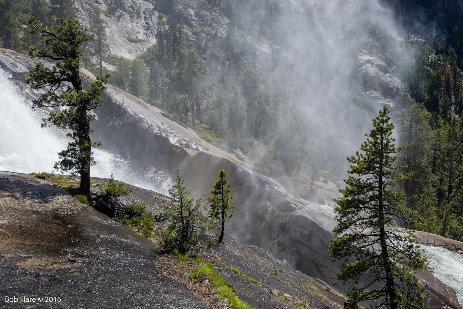 In June 2016 I followed Tenaya Creek as it left Tenaya Lake and flows toward Yosemite Valley. My goal was to find the Upper Tenaya Canyon Cascade at full flow and to locate one of John Muir's journal sketch sites (which I found). Pywiack Cascade, below the cascade I was seeking, is too dangerous to approach. But the first cascade is not if approached via the saddle to the east of the creek. I followed Jeffrey Schaffer's advice in his "Yosemite National Park Hikers' Guide."